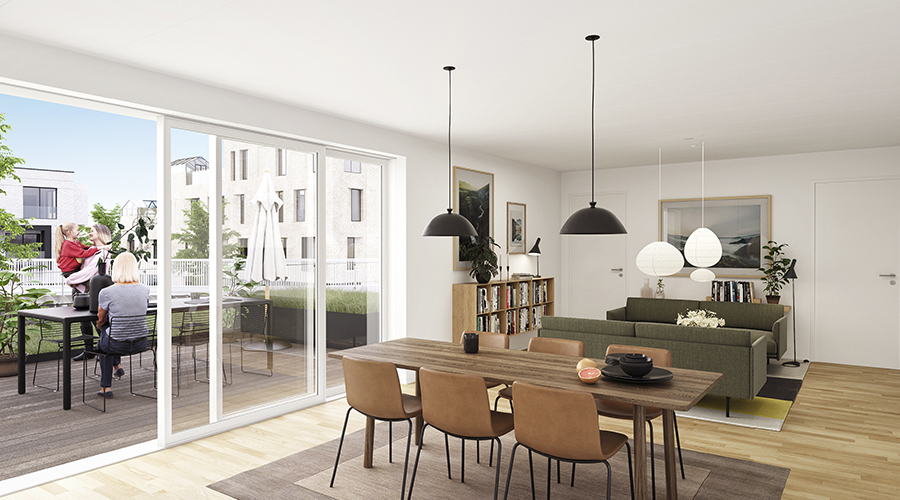 Lyse og karakterfyldte lejligheder i et grønt byrum